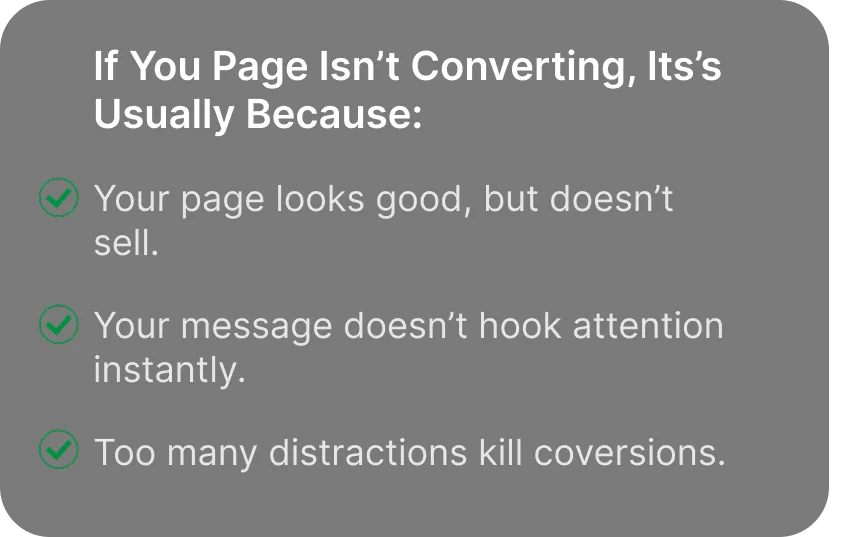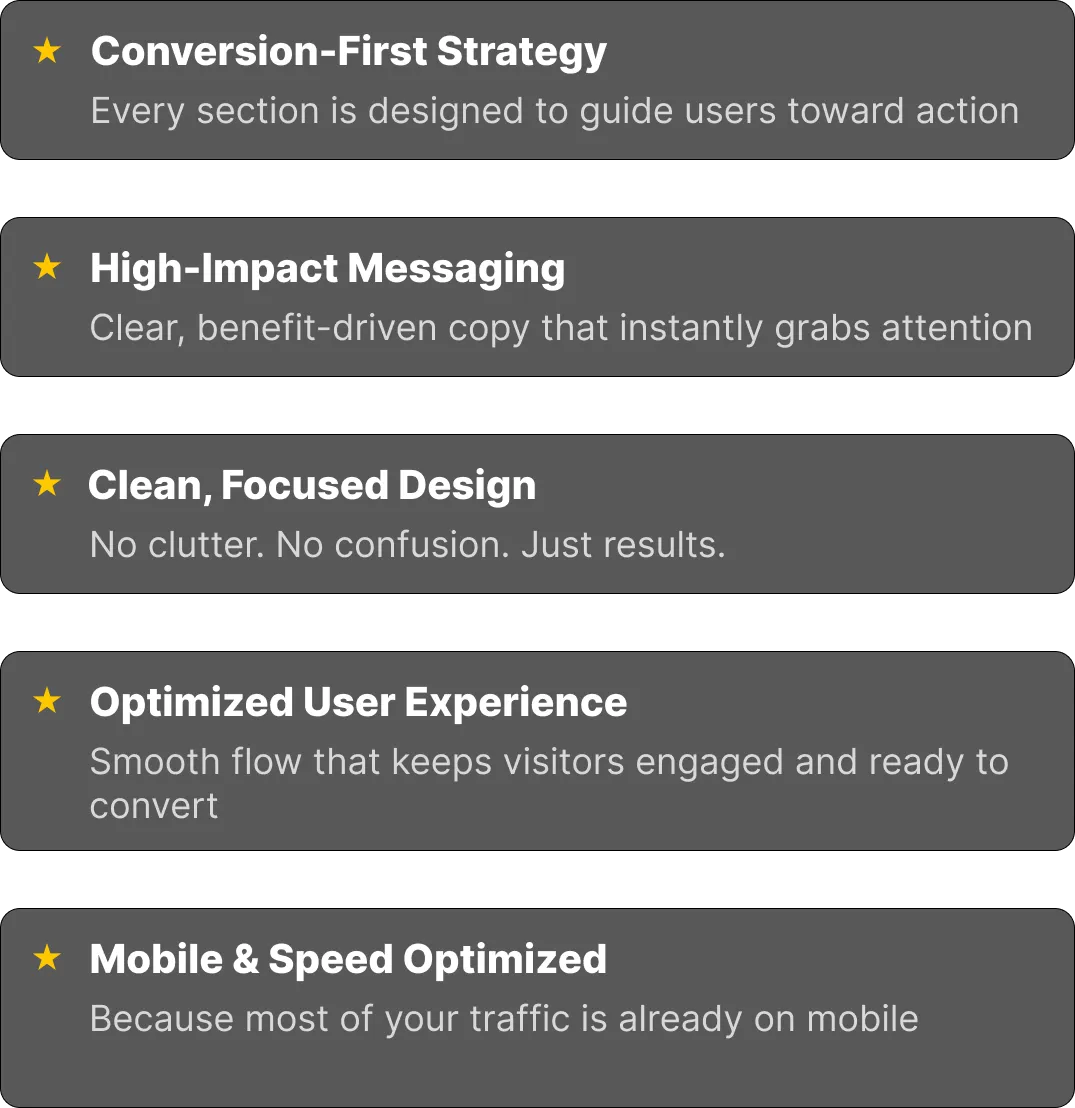 We focus conversions, not just design. Every section is strategically built to guide visitors toward taking action.